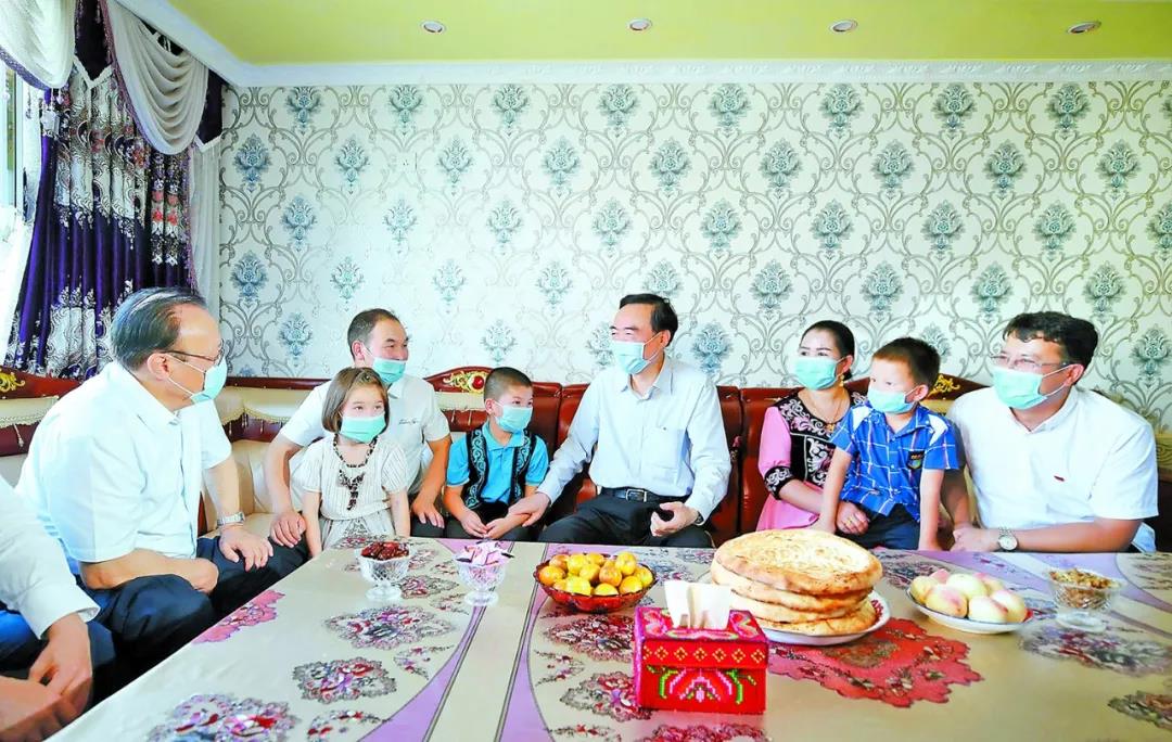 日前,自治區(qū)黨委書記陳全國,自治區(qū)黨委副書記、自治區(qū)主席雪克來提·扎克爾在克孜勒蘇柯爾克孜自治州調(diào)研統(tǒng)籌推進(jìn)常態(tài)化疫情防控和經(jīng)濟(jì)社會發(fā)展工作。這是陳全國、雪克來提·扎克爾在阿克陶縣絲路佳苑易地扶貧搬遷安置點,走進(jìn)建檔立卡貧困戶穆拉提·艾海提家中,關(guān)心詢問搬遷后的生活情況,勉勵他們持續(xù)增收致富,把日子越過越好。全媒體記者崔志堅攝