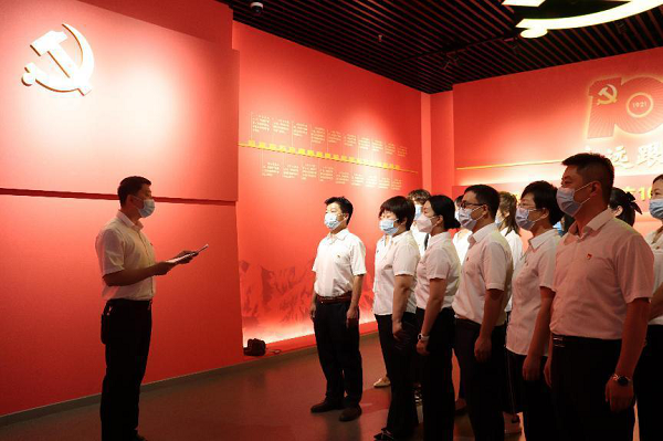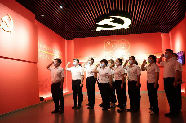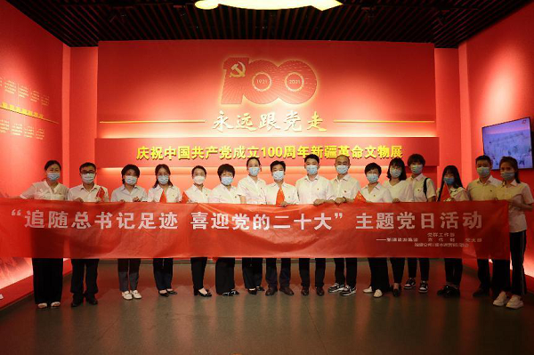 隨后大家又參觀了“永遠跟黨走——慶祝中國共產(chǎn)黨成立100周年”新疆革命文物展。集團公司投資總監(jiān)張小雷帶領(lǐng)大家重溫了入黨誓詞,集團公司黨群工作部副部長楊繼平領(lǐng)學(xué)了習(xí)近平總書記在新疆考察時的重要講話精神。
