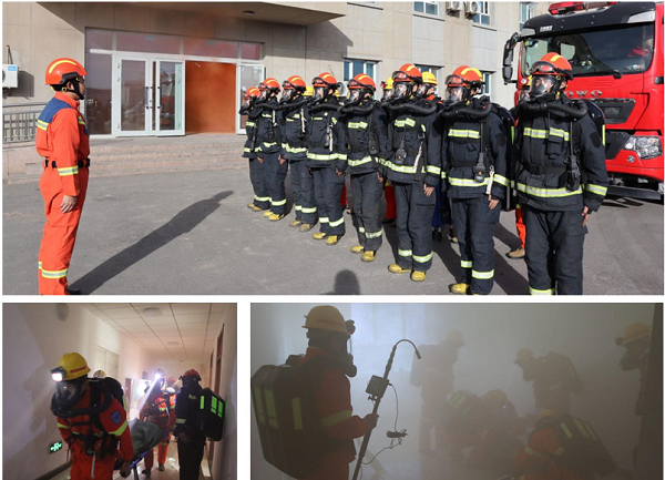 演練模擬新能(北京)公司辦公樓發(fā)生火災(zāi),樓內(nèi)有人員遇險(xiǎn)被困亟待救援。隨著一聲指令,三塘湖公司立即啟動應(yīng)急預(yù)案,新能(北京)公司辦公樓濃煙四起,樓內(nèi)職工遮擋口鼻,彎腰伏身,從各辦公室、宿舍迅速有序地按預(yù)定路線,撤離到安全地點(diǎn),消防車、救護(hù)車同時出動,趕赴現(xiàn)場迅速展開救援行動。
