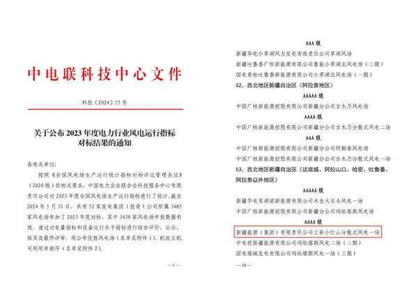 近日,中國電力企業(yè)聯(lián)合會(huì)公布了《2023年度電力行業(yè)風(fēng)電運(yùn)行指標(biāo)對標(biāo)結(jié)果》,立新能源公司小紅山風(fēng)電場憑借出色的運(yùn)營管理和高效表現(xiàn),在眾多風(fēng)電場中脫穎而出,榮獲4A級風(fēng)電場稱號(hào)。