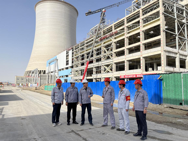 △圖 李偉一行在和田2×35萬(wàn)千瓦熱電聯(lián)產(chǎn)項(xiàng)目安全督導(dǎo)檢查