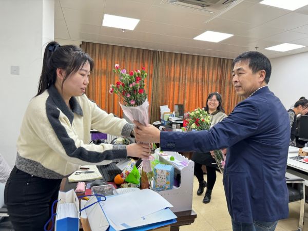 為表達(dá)對(duì)女性同胞的敬意和節(jié)日祝福,天合公司舉行慶祝“三八”婦女節(jié)送花活動(dòng)。公司領(lǐng)導(dǎo)將精心準(zhǔn)備的花束,一一送到奮斗在工作崗位上的女員工手中,并送上節(jié)日的問(wèn)候和最美好的祝愿!