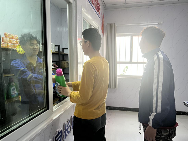 “真稀奇,工程項(xiàng)目現(xiàn)場(chǎng)開了不收錢的超市,只要有安全積分,就可以在超市里兌換商品,我們以后一定要遵守安全規(guī)章,還要多監(jiān)督其他人,爭(zhēng)取多賺積分,能省不少錢呢?!睅孜还び验_心地說(shuō)道。
